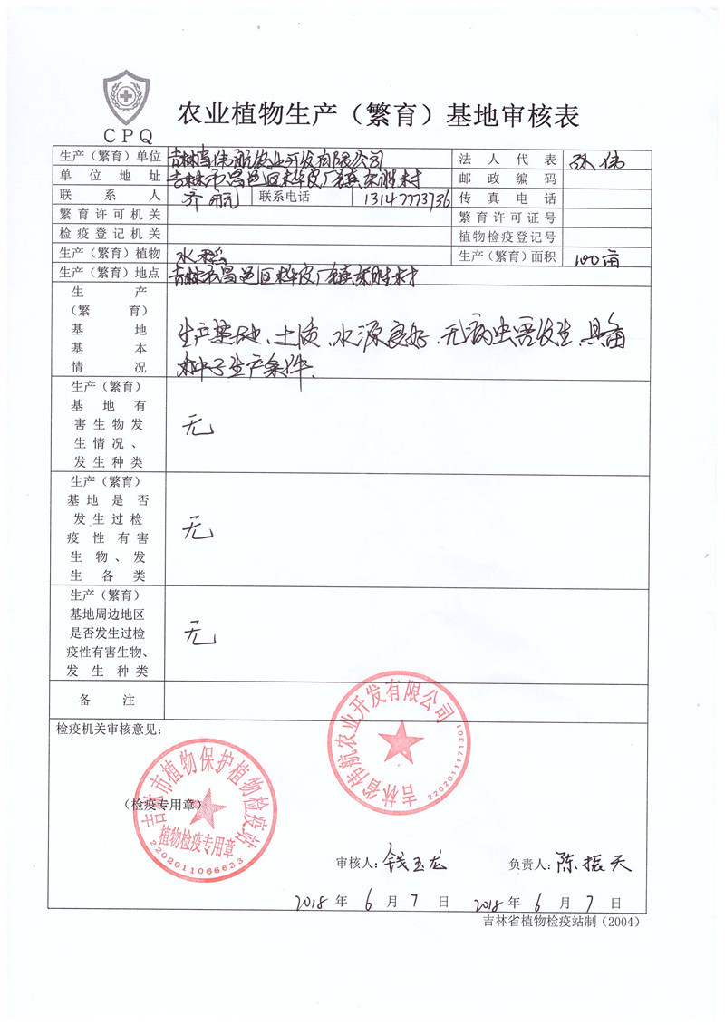 农作物生产基地审核表