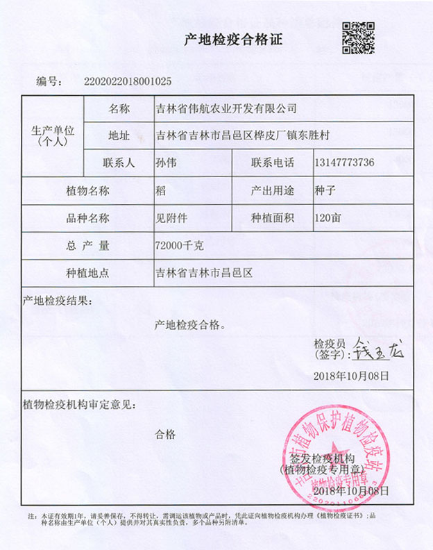 产地检疫合格证