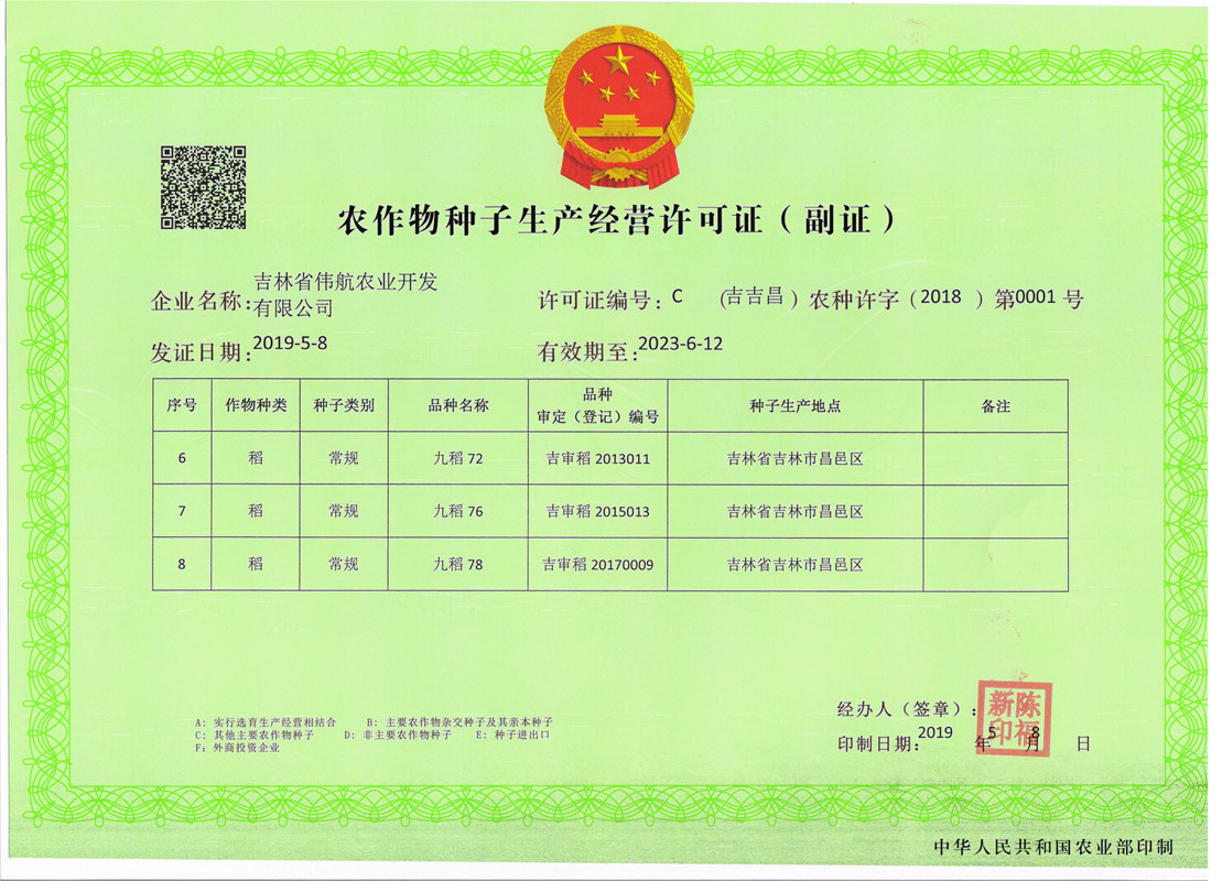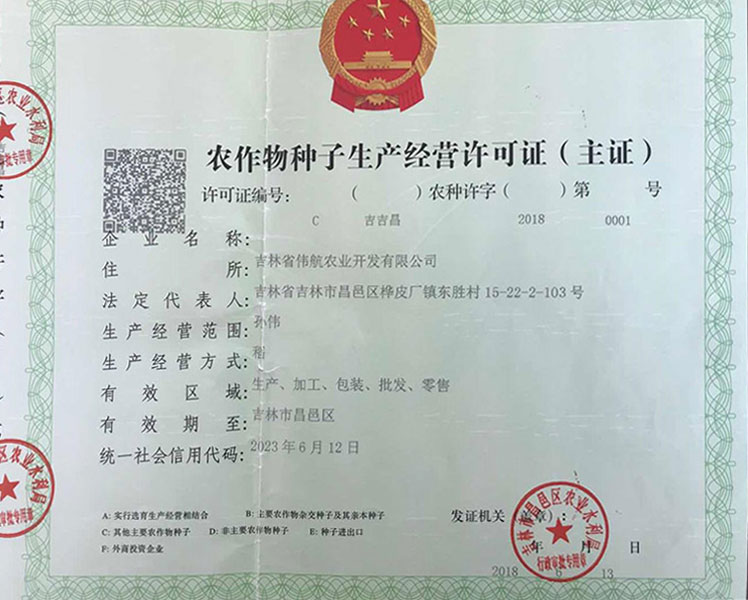 农作物种子生产经营许可证